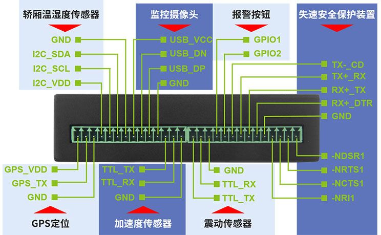 在整套电梯物联网管理方案中,将GPS定位传感器、轿厢温度传感器、加速度传感器、报警装置接入开云电子R100;利用R100的边缘计算能力,对采集到的数据进行运算和整形,迅速识别并响应异常运行状态;最终通过无限局域网络或蜂窝数据网络上发至管理平台,完成电梯的物联网接入。