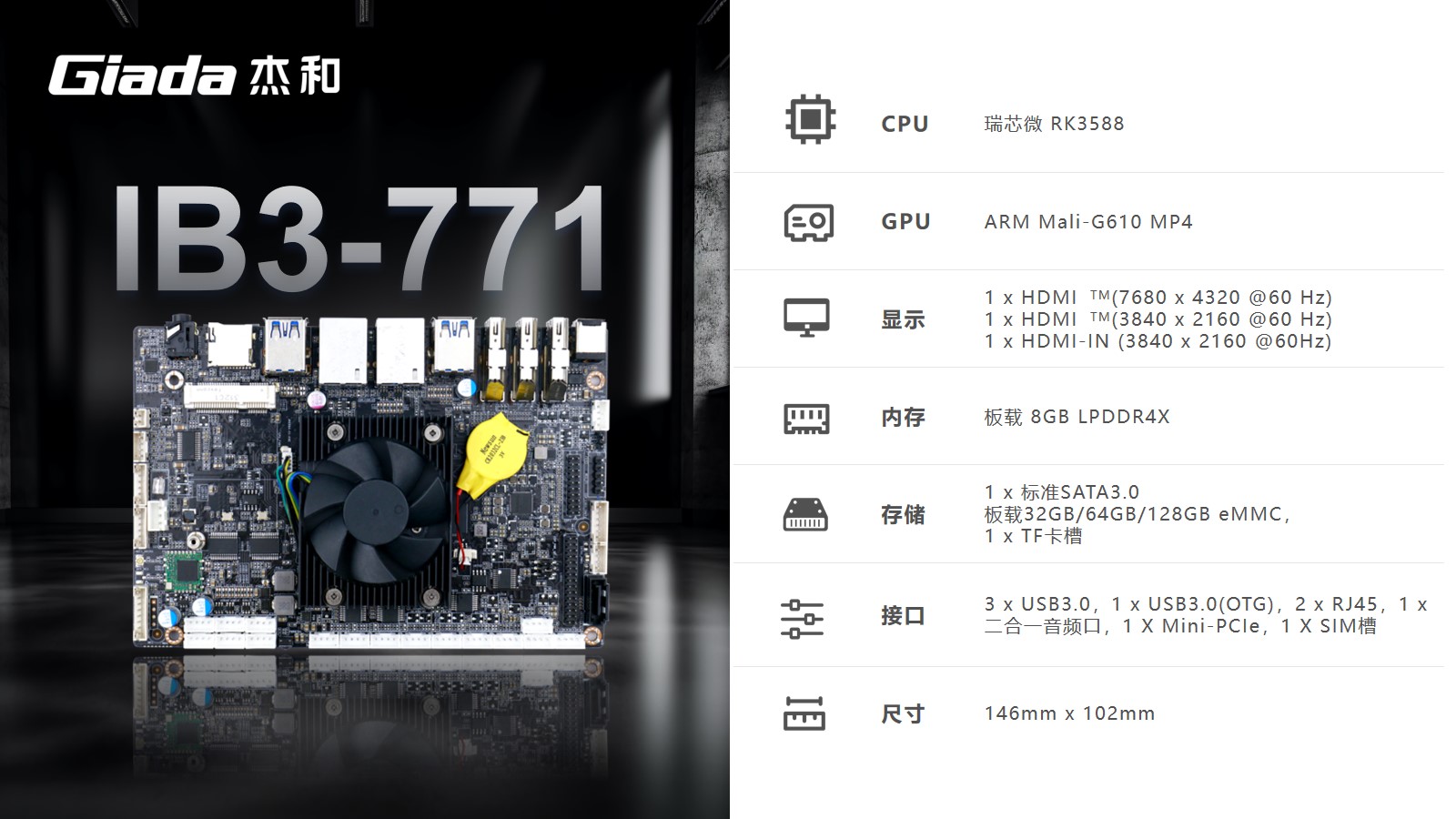 本次kaiyun电子科技高交会展示的工业计算机主板IB3-771、IB3-761,搭载了Rockship的芯片,可应用于工业自动化、物联网解决方案和汽车系统,已经被多数客户部署在工厂车间以及物联网生态系统的智能设备中。