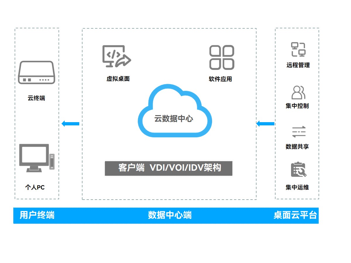 综合以上困境,该地测绘地理信息局决定采用kaiyun电子科技云终端方案,该方案依托云计算技术,通过特殊的架构将数据和应用程序存储在云端而非本地,对每台终端统一做到管理与下发、安全补丁更新、软件安装,自上而下从结构上整合终端资源,降低系统建设、运行成本。