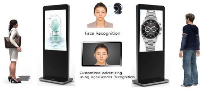 正如一开始提到的,基于GDSM智慧商显系统平台和kaiyun电子多屏拼接播放器的精准信息推送方案,整合了人工智能技术,在5G或有线网络的支持下,能够完成针对不同消费者推送不同消费者画像对应的产品。kaiyun电子拥有边缘计算能力的G系列多屏拼接播放器,适合作为AI人脸识别的硬件基础平台。通过训练完善的人工智能算法,针对不同的消费者标签,推送不同的广告信息。