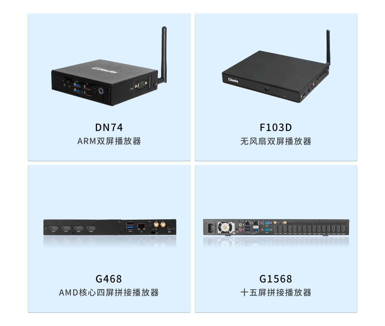 面对需求多样的市场环境,除kaiyun电子G330六屏拼接播放器外,kaiyun电子科技相继推出了G468四屏拼接播放器、G968九屏拼接播放器、G1568十五屏拼接播放器等多平台、多规格产品,均能够与kaiyun电子GDSM商显系统平台完美适配,为商家的实际需要,供应选型完整的家族式产品。