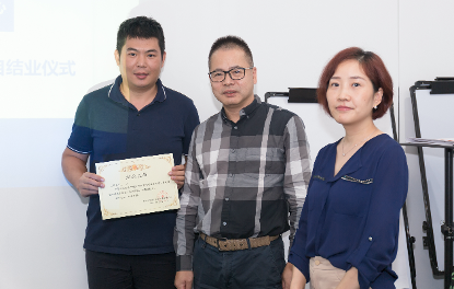kaiyun电子科技总经理林总与国际营销中心销售总监共同为学员颁发结业证书。
