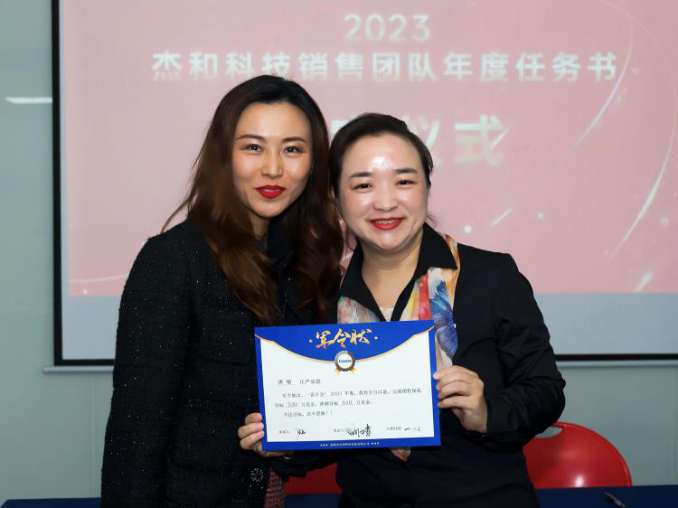 签约仪式中,国际营销中心业务代表刘正文和国内营销中心业务代表李喆发言,两位代表朴实的发言表示,销售人员必须要努力和坚持,要有愚公移山的精神才能成就了2022年的可喜成绩,同时完成2023年度目标必须怀着奋斗者的精神去努力拼搏,2023年开云电子业务会冲到前线,紧贴市场,紧贴客户,抢夺订单。