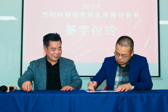 小寒虽过,鹏城依然暖阳如春,1月6日《kaiyun电子科技2023年度销售任务状签约仪式》顺利召开。kaiyun电子科技总经理林坤杰先生与各营销中心副总、总监,公司海内外业务骨干和职能部门负责人共同参与了此次签约仪式。