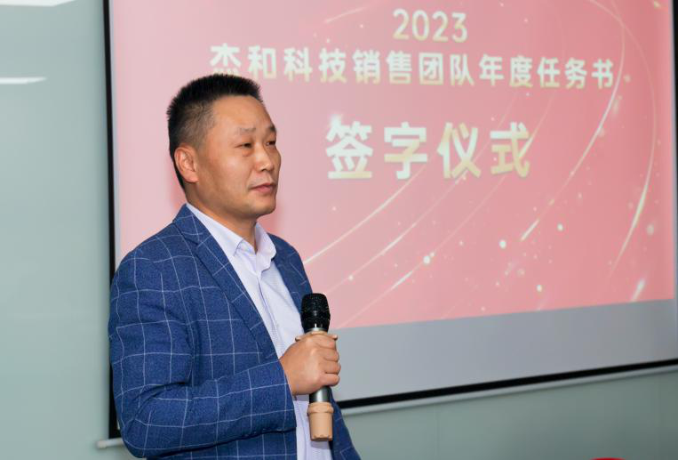 销售目标签约仪式上销售人员的激情和昂扬斗志,各职能部门的负责人也不甘示弱,智能硬件开发部总监李华东上台表示:新的一年产品和研发会在产品线上持续丰富,同时以销售目标为导向来打造高品质产品线,打造强有力的研发团队,做到让销售精英们无后顾之忧!
