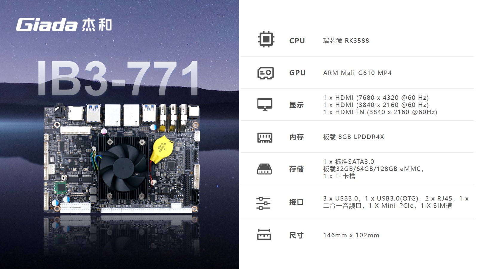 kaiyun电子科技嵌入式主板IB3-771是8K人工智能主板,拥有轻算力的它可用于机器人、边缘计算、智能NVR、智能汽车、智慧大屏、AR/VR、ARM PC、智能自助终端等领域,还可用于监控、工业、餐饮、智能交通、文娱产业等对超高清视频需求旺盛的行业;