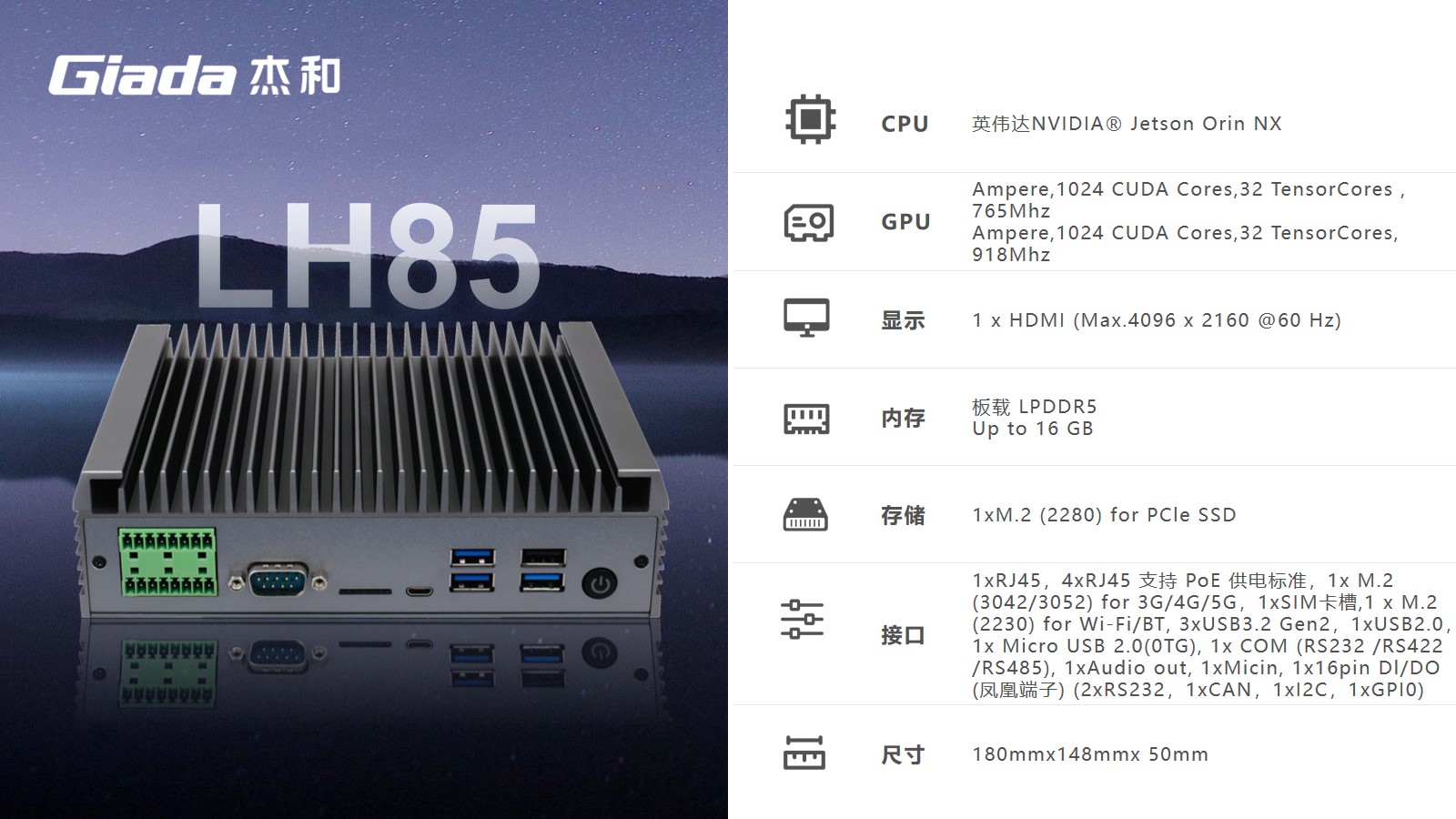 kaiyun电子科技AI边缘计算LH85,拥有100TOPS超强算力,能为工业控制领域客户的AI应用提供强大的算力支持和充足的通信、控制接口保障,可广泛应用于智能制造、机器视觉、AGV、智慧城市等领域。