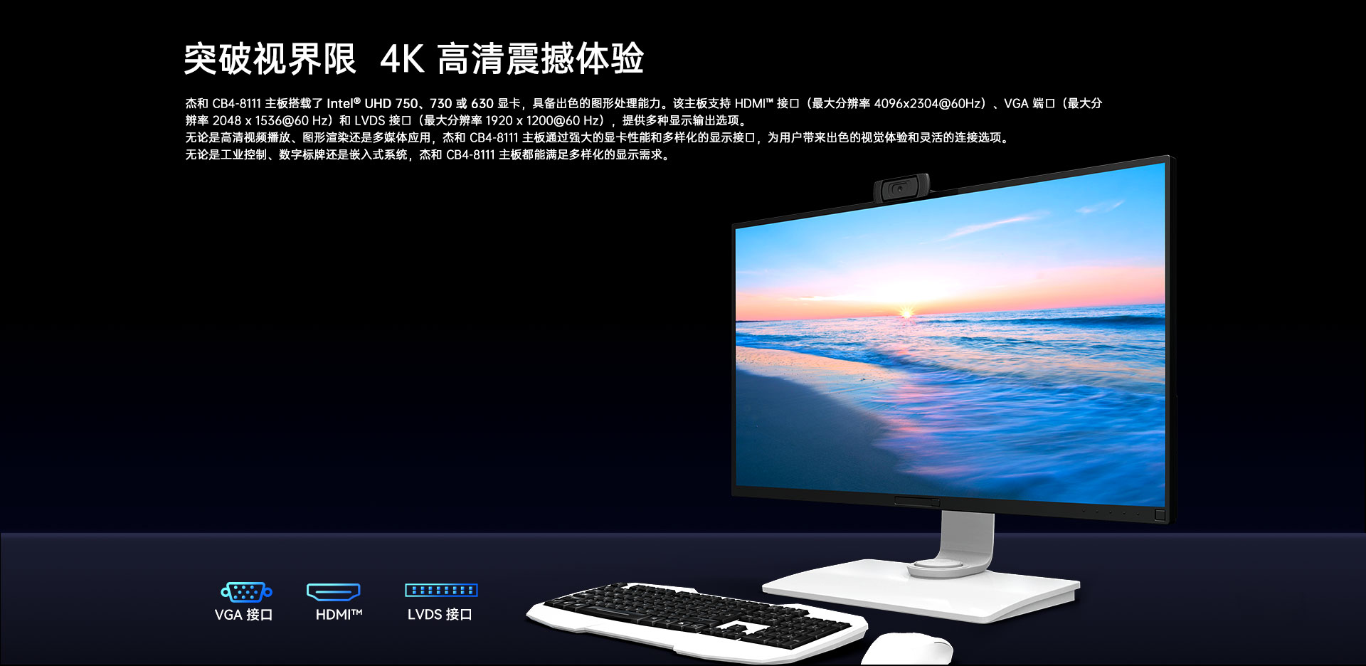提供1x LVDS +1x HDMI+1x VGA 三视频接口输出