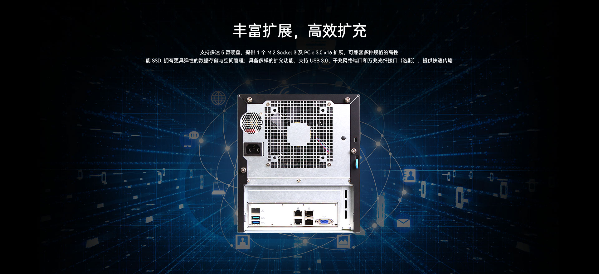 4x DDR4 DIMM插槽 预装4GB,最大扩展128GB